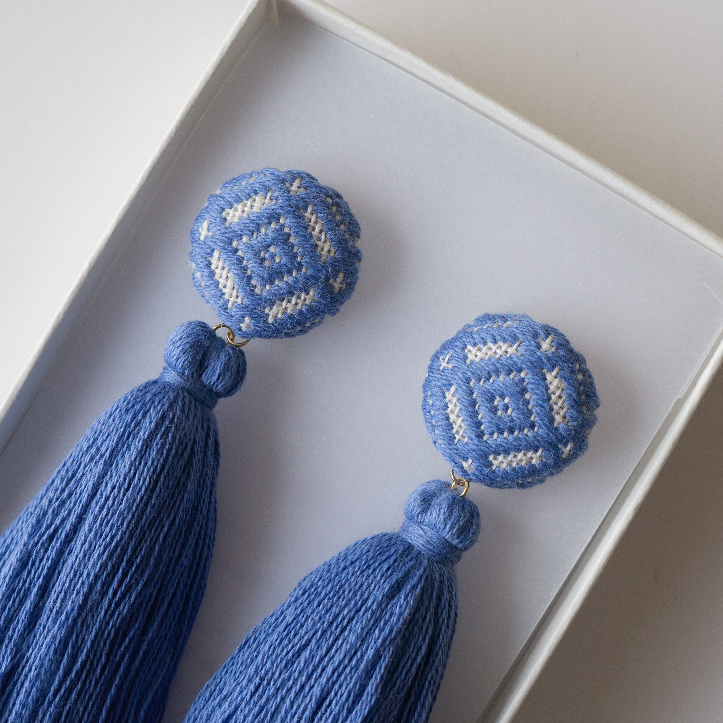 同色のこぎん糸で大ぶりなタッセルを作り組み合わせました。