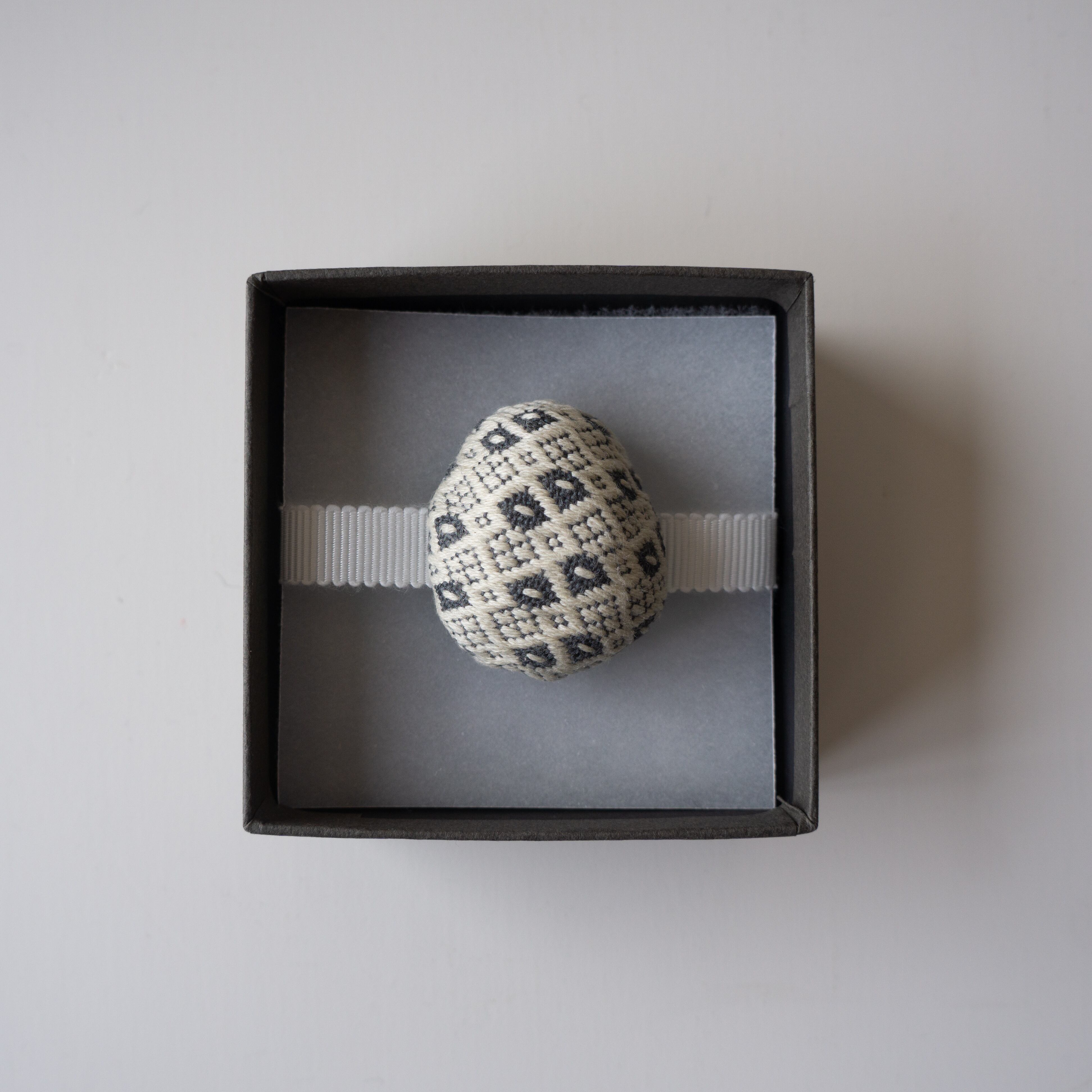 お気に入りの石ころ探しに出かけ、持ち帰り、型をとって帯留めに仕立てました。